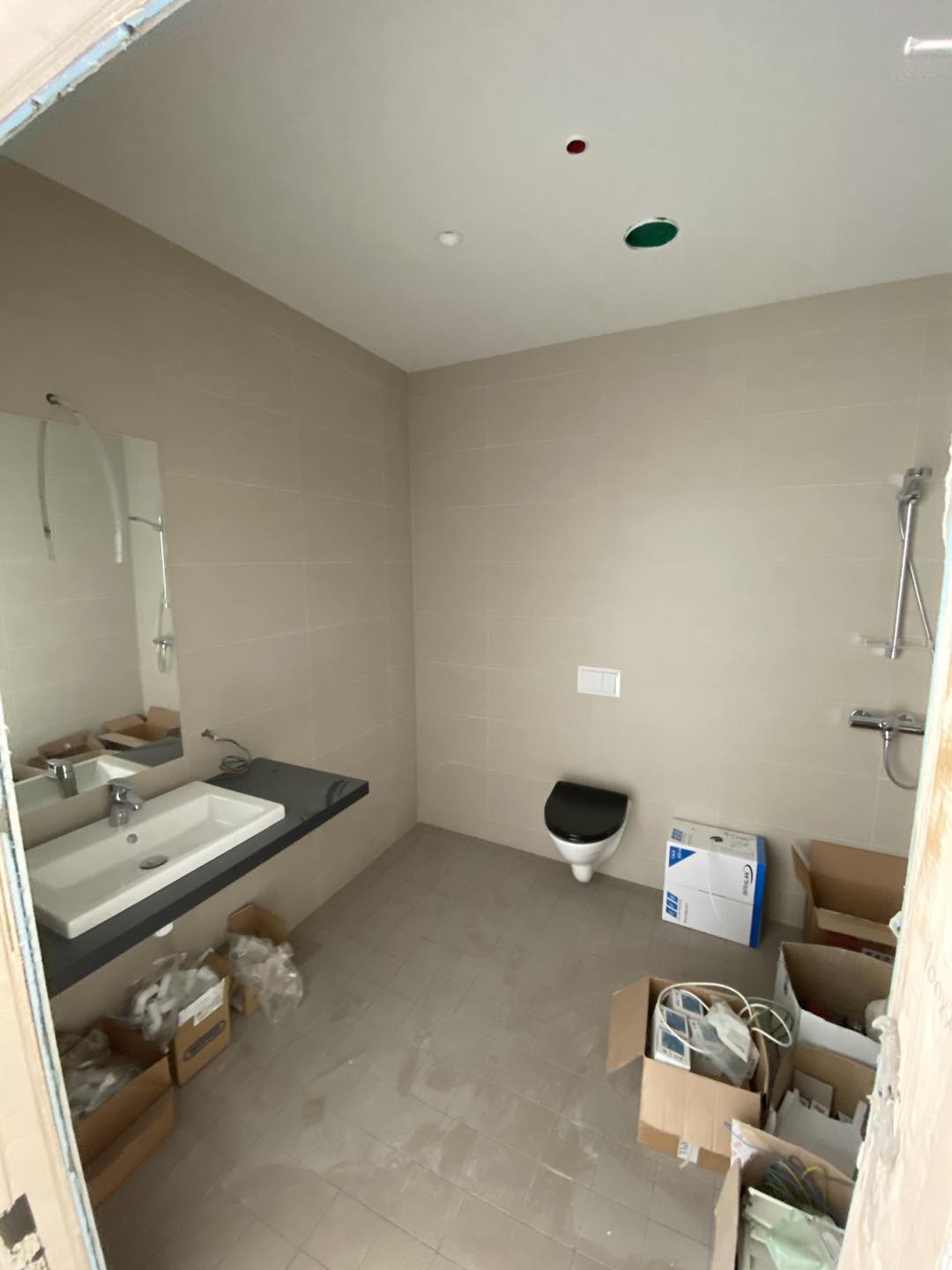 Her har vi sparklet badegulv, lagt membran og flislagt gulv og vegger på 23 bad og wc.